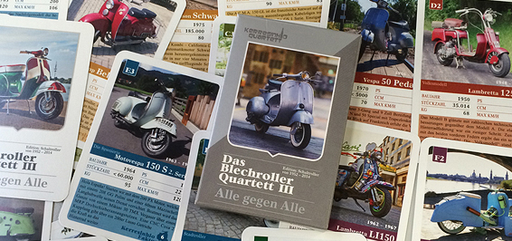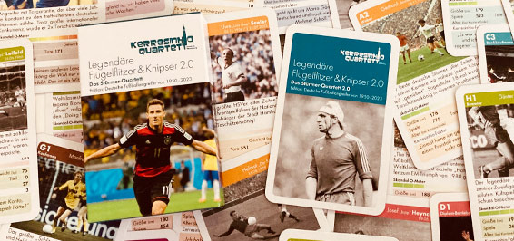 Natürlich müssen die Fußballfans und die Rollerfahrer nicht auf 'ihre Spiele' verzichten, so dass ein Blechroller Quartett Teil 3 folgt. Zu Ehren unserer gewonnenen Weltmeisterschaft im Jahr 2014 gibt es das Quartett "Deutsche WM-Legenden von 1934 - 2014", das schnellst ausverkauftes Spiel der Kerresinhio Geschichte. 2015 erscheint das lang ersehnte internationale Trainer-Legenden Quartett, 2017 folgt das Europapokal-Legenden Quartett. Kurz vor dem CORONA-Kerresinhio-Winterschlaf, der zwei Jahre dauerte erschien der schnell vergriffene Klassiker der legendären Fußball-Skandale.